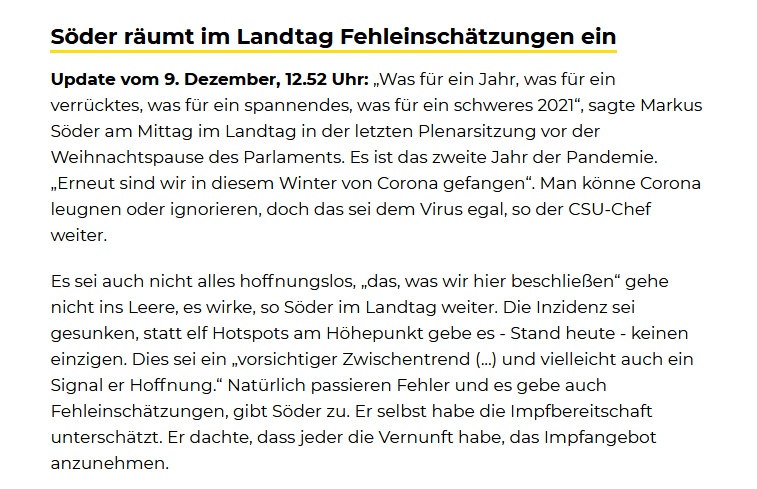 Tja, es sei ihm verziehen, er hat die Impfbereitschaft überschätzt. (im Artikel heißt es „unterschätzt“ aber Hr. Söder meint hier sicher überschätzt)